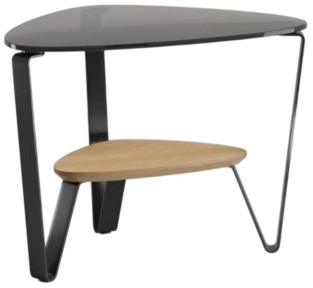 An attractive and functional end table that pairs perfectly with the two available coffee tables in the Dino collection. The uniquely-shaped Dino table collection has been updated with brushed carbon legs, grey-tinted glass, and a new finish assortment.Read More