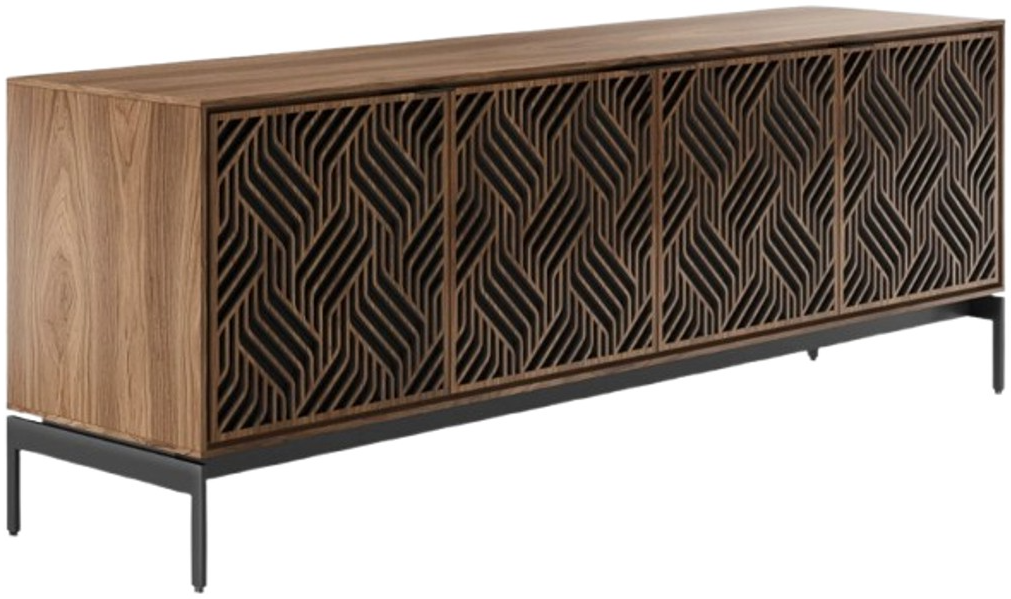 Precisely crafted doors with perforated metal backing offer ventilation and IR-remote compatibility, keeping your media components accessible and ventilated with sleek, understated elegance.
