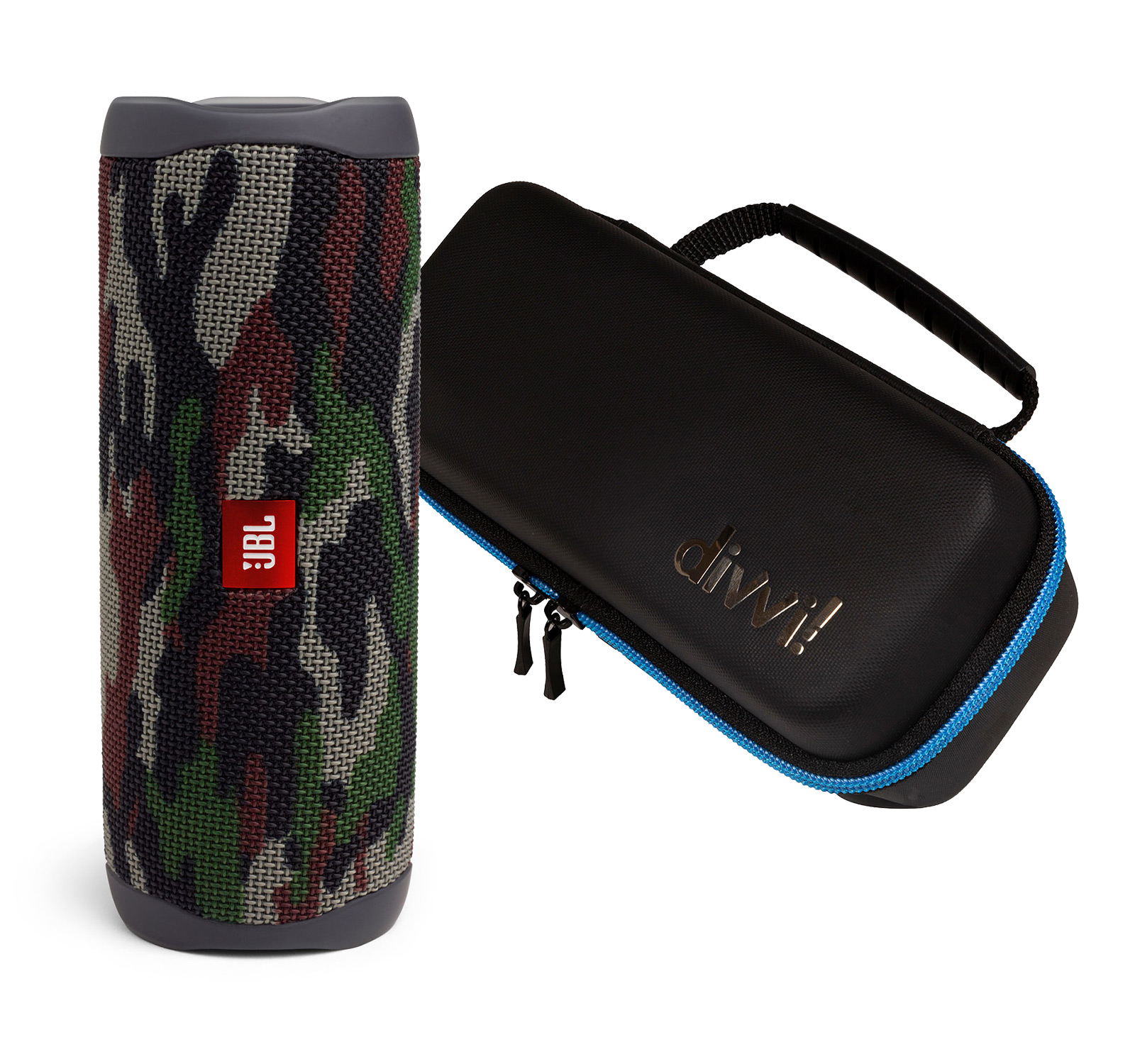 JBL FLIP 5 Camouflage Portable wireless speaker kit includes divvi! Flipster case.Read More