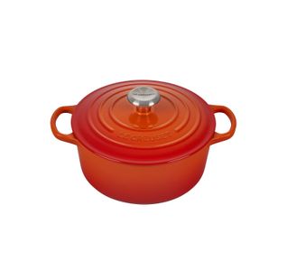 With room to feed the whole family, you can plan a big meal and do it all in one dish! Braise or sear your meats right in the pot before making a stew, create a lovely stir-fry, slow-cook a casserole, or even bake a cake with the cast iron 5.5 qt. Round Dutch Oven by Le Creuset. You'll easily have enough room to accommodate generously sized ingredients, substantial amounts of stock and larger than usual recipes, all cooked over a variety of heat sources including induction, oven, grill, stovetop, gas, electric and more. The sand color interior enamel makes cleanup a snap by preventing burning and sticking, so you can simply wipe it clean when you're done - no heavy scrubbing needed. And the exterior enamel resists chipping and cracking, enduring years of use while maintaining its beautiful finish.Read More
