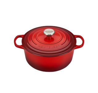 With room to feed the whole family, you can plan a big meal and do it all in one dish! Braise or sear your meats right in the pot before making a stew, create a lovely stir-fry, slow-cook a casserole, or even bake a cake with the cast iron 6.75 qt. Round Dutch Oven by Le Creuset. You'll easily have enough room to accommodate generously sized ingredients, substantial amounts of stock and larger than usual recipes, all cooked over a variety of heat sources including induction, oven, grill, stovetop, gas, electric and more. The sand color interior enamel makes cleanup a snap by preventing burning and sticking, so you can simply wipe it clean when you're done - no heavy scrubbing needed. And the exterior enamel resists chipping and cracking, enduring years of use while maintaining its beautiful finish.Read More