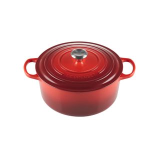 With room to feed the whole family, you can plan a big meal and do it all in one dish! Braise or sear your meats right in the pot before making a stew, create a lovely stir-fry, slow-cook a casserole, or even bake a cake with the cast iron 7.25 qt. Round Dutch Oven by Le Creuset. You'll easily have enough room to accommodate generously sized ingredients, substantial amounts of stock and larger than usual recipes, all cooked over a variety of heat sources including induction, oven, grill, stovetop, gas, electric and more. The sand color interior enamel makes cleanup a snap by preventing burning and sticking, so you can simply wipe it clean when you're done - no heavy scrubbing needed. And the exterior enamel resists chipping and cracking, enduring years of use while maintaining its beautiful finish.Read More