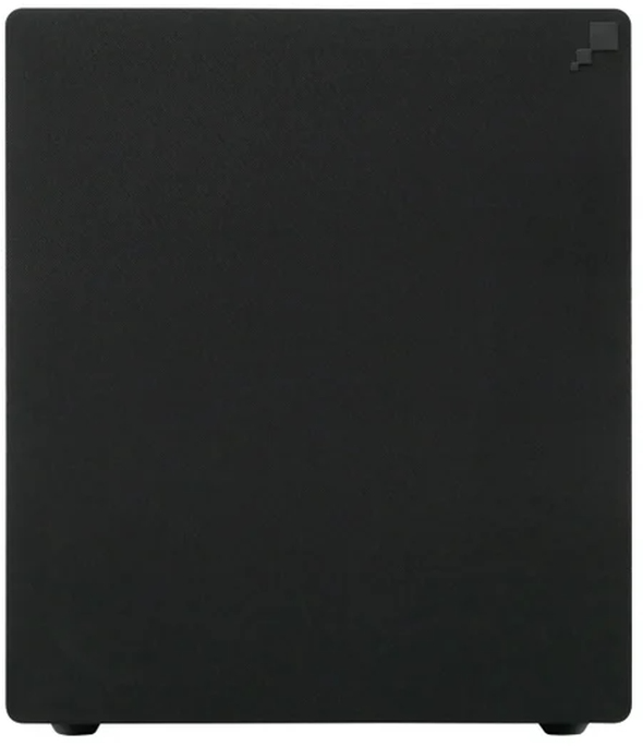High gloss, piano black finish with black cloth grille